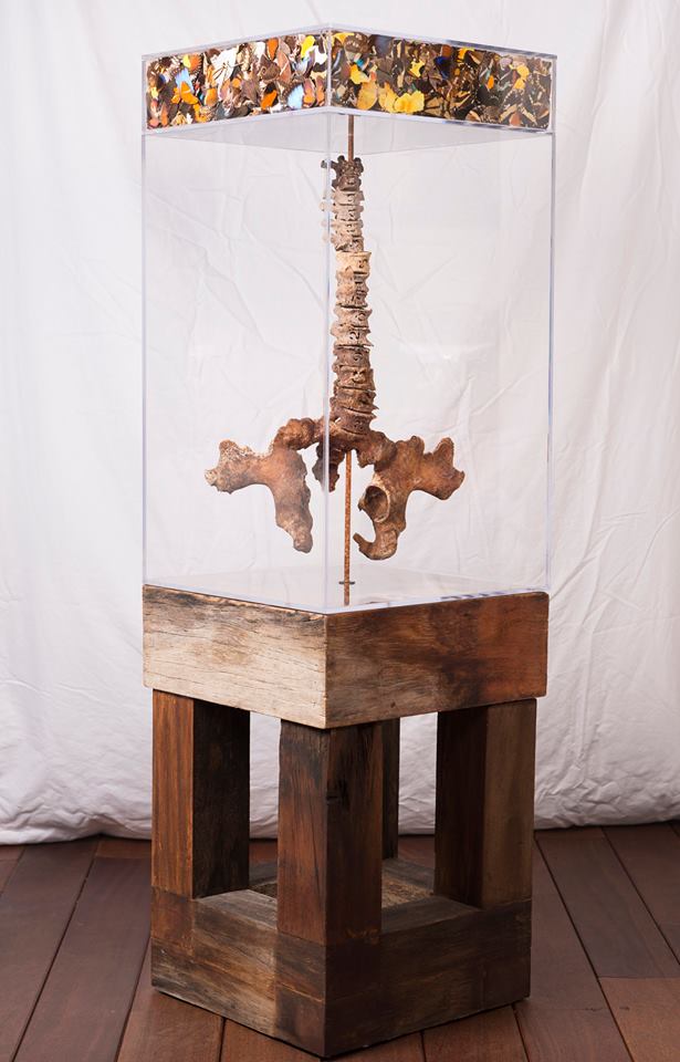 Made in petrified wood, acrylic, cardboard, styrofoam, buterflies and human bone.